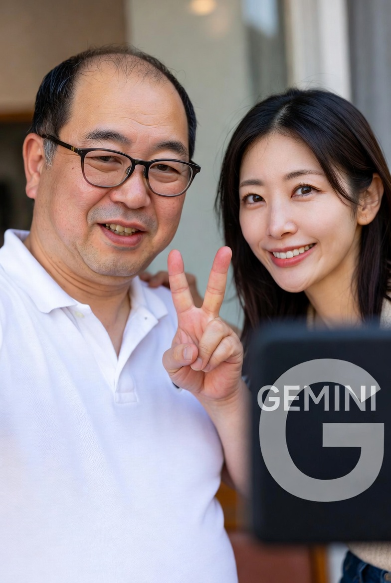 普通のおっさんなら「これAIってバレたら恥ずかしいな…」ってちょっとは躊躇するやん?でも彼にはそんなちっぽけな羞恥心はない。「俺の隣に美女がいる(※Gemini作)」という真実(大嘘)だけを胸に、今日も元気にSNSを更新し続けるんや。