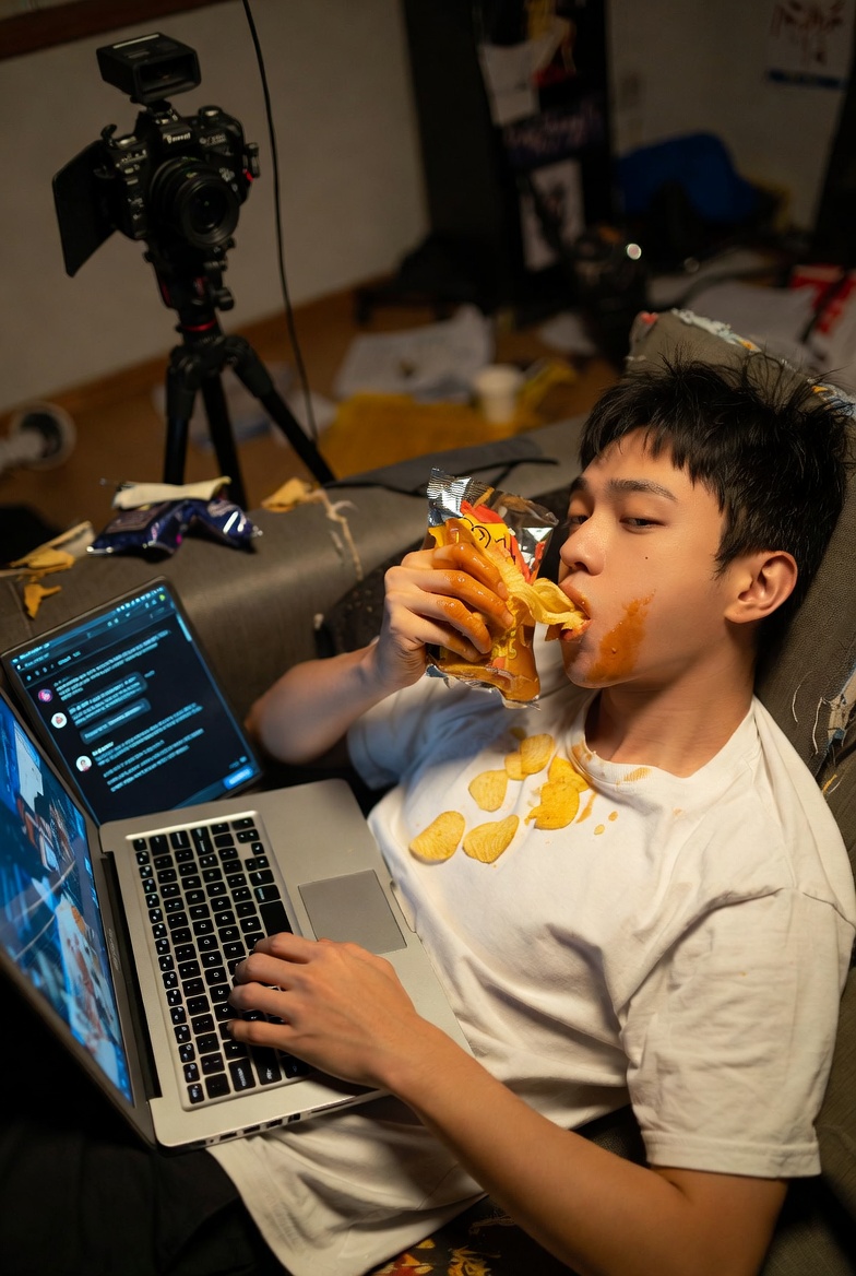 万年床みたいなワンルームで、AIにジャンクフード運ばせて、ポテトもぐもぐしながら「クリエイティビティ」て!シュールすぎるわ!コントのセットか思たわ!そのうちAIに「ポテトを口に運んで咀嚼するエージェント」まで作らせるんちゃうか?